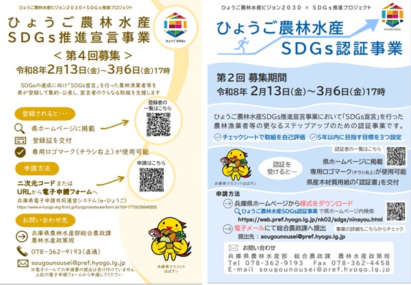 ひょうご農林水産SDGs推進宣言事業の第4回募集及びひょうご農林水産SDGs認証事業の第2回募集