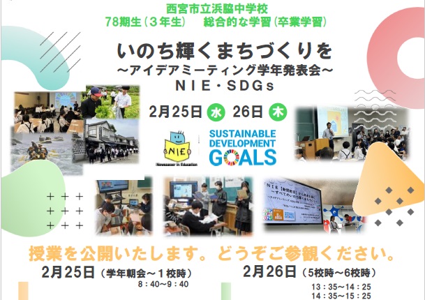 「みらいチャレンジEXPO」では、ICTを活用し仮想空間内のEXPOで、各企業の社会課題解決の実例を学びます。生徒が主権者として社会的事象の課題や問題を新聞記事から取り上げ、SDGs17の目標の内、11番目の「住み続けられるまちづくりを」をテーマに、『いのち輝くまちづくり』を目指してアイデアを出し合い互いの考えを深め、代表生徒が発表します。授業を公開いたしますので、どうぞご参観ください。