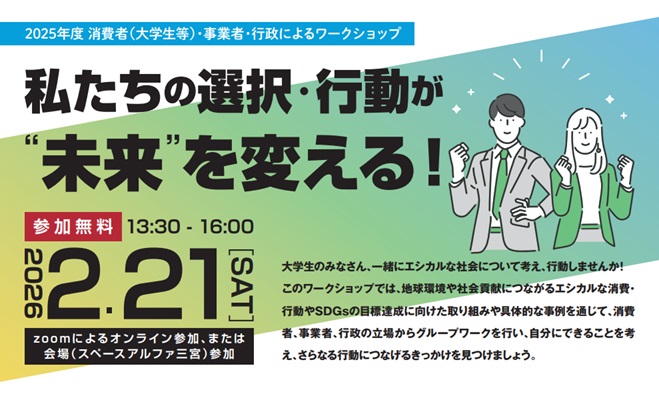次世代のための持続可能な社会の実現をめざして開催する3者(消費者・事業者・行政)によるワークショップは、今年度で12回目となります。 次世代(大学生)の消費者リーダー「くらしのヤングクリエーター」が、SDGs・エシカル消費に繋がる取組について学び、SDGs・エシカル消費に取り組む企業の広報手法等について話し合うことで、参加者自身が日々の選択・行動が未来を変える意識を持ち行動することを目的に開催します。※参加者は決定済み(詳細はこちら)
