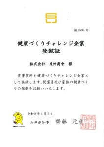 このたび、兵庫県が推進する「健康づくりチャレンジ企業」に登録いたしました。