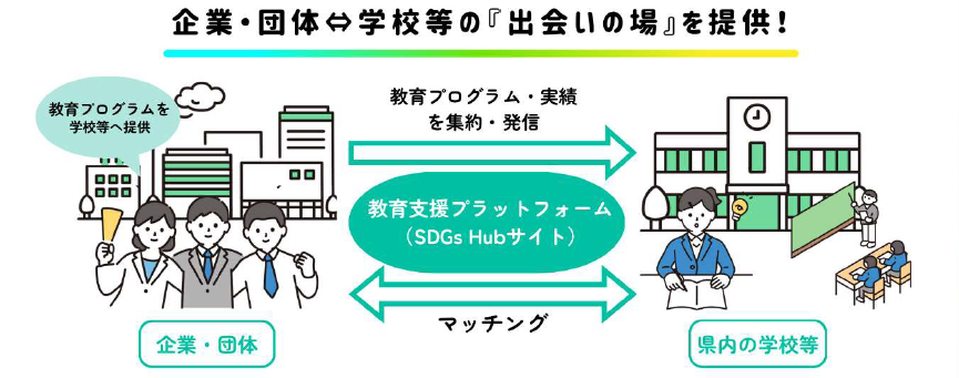 本プラットフォームでは、企業・団体等が有する多様な教育プログラムの情報を一元的に集約・発信することで、学校側が情報を把握しやすい環境を作り双方のマッチングを支援します。