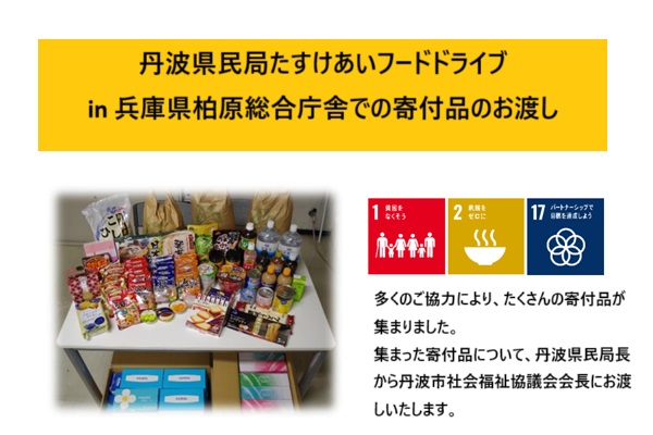 丹波県民局たすけあいフードドライブin兵庫県柏原総合庁舎での寄付品のお渡し(11月19日)